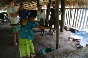 After this warm welcome we will learn how to do another traditional thing of the Siona community. Now, as we already have our drink, the food is missing. So let’s do a homemade bread!
