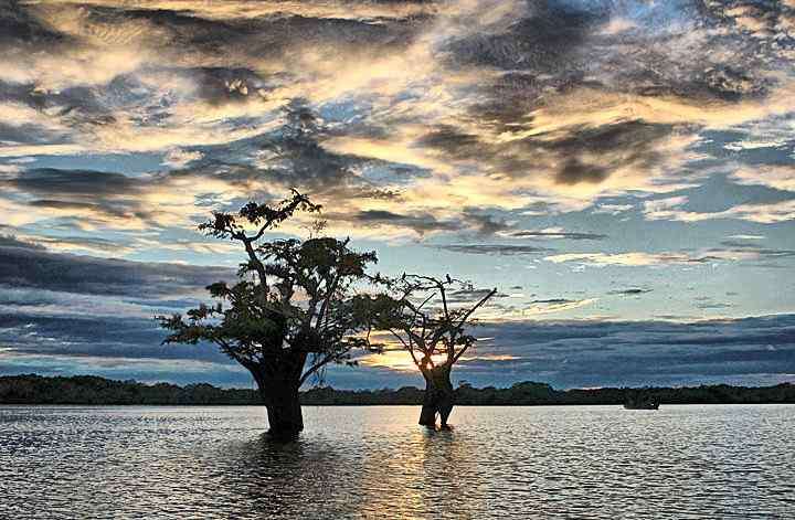 Und wieder einer der schönen, geheimnisvollen Sonnenuntergänge an der Cuyabeno-Lodge.