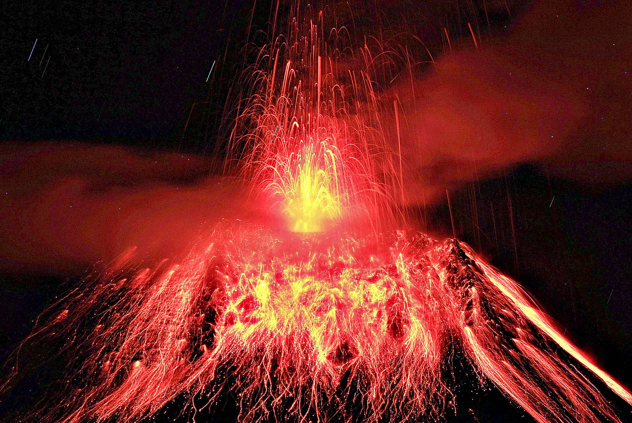 Aktive Vulkane Ecuador: Ausbruch Tungurahua mit lava und aschAktive Vulkane Ecuador: Tunguragua eruptionAktive Vulkane Ecuador: Vulkanausbruch in Ecuador