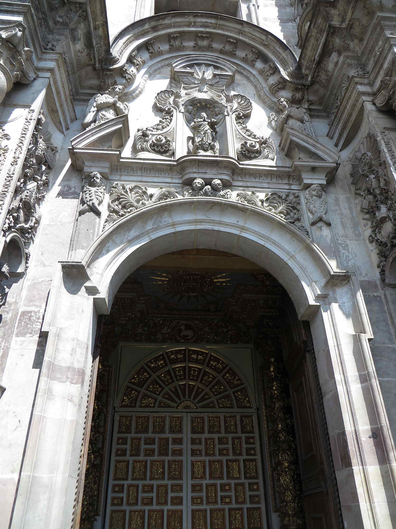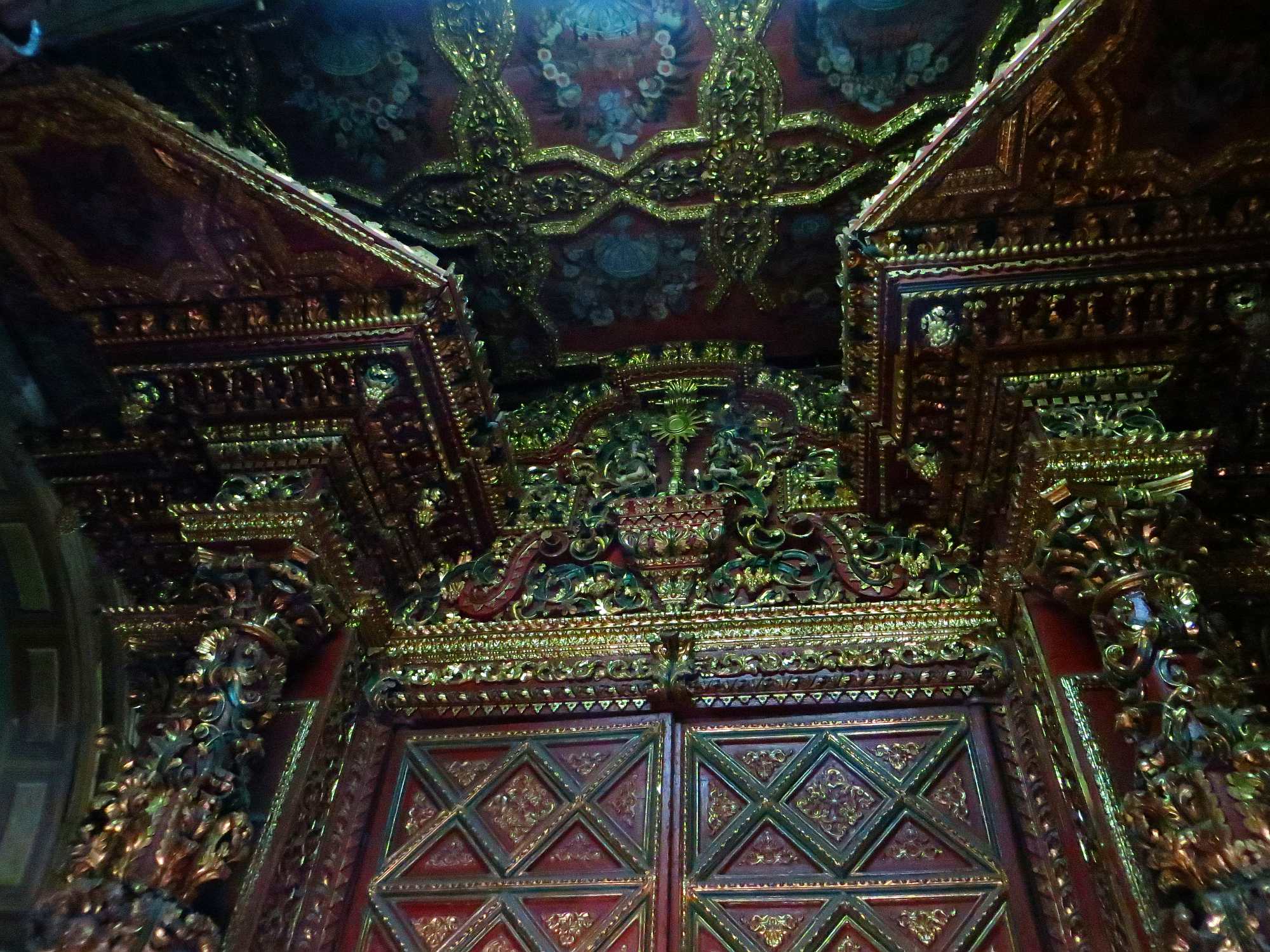 FAMOUS HISTORIC CHURCHES IN QUITO, ECUADOR: Entrance Compañía de Jesus Church FAMOUS HISTORIC CHURCHES IN QUITO, ECUADOR: Internal main doors Compañía de Jesus Church